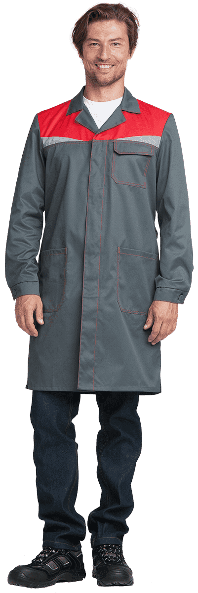 Халат КМ-10 ЛЮКС (серый/красный)