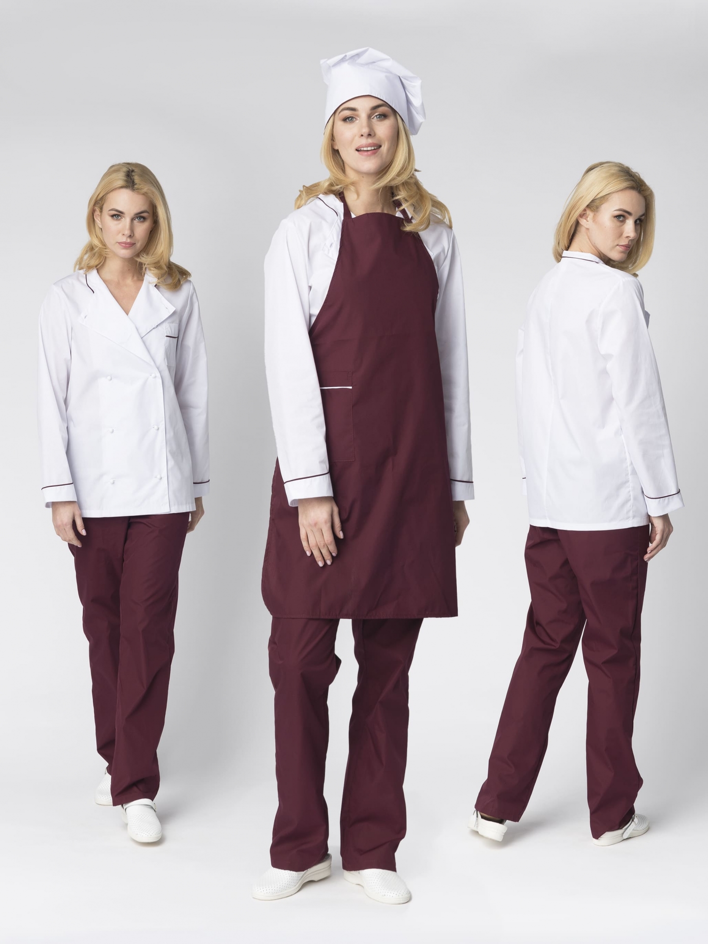 Костюм ГУРМАН женский (белый/бордовый)