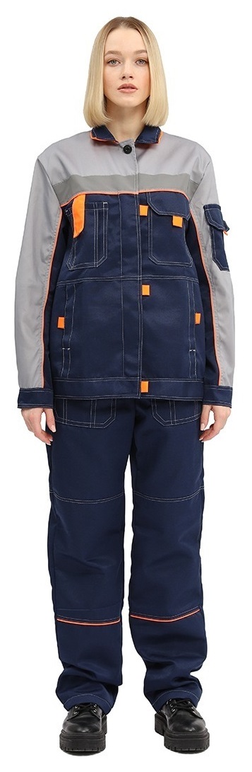 Костюм ЖЕНСКИЙ РОЛЬФ куртка/брюки, цвет: т.синий/СВ.серый/оранжевый