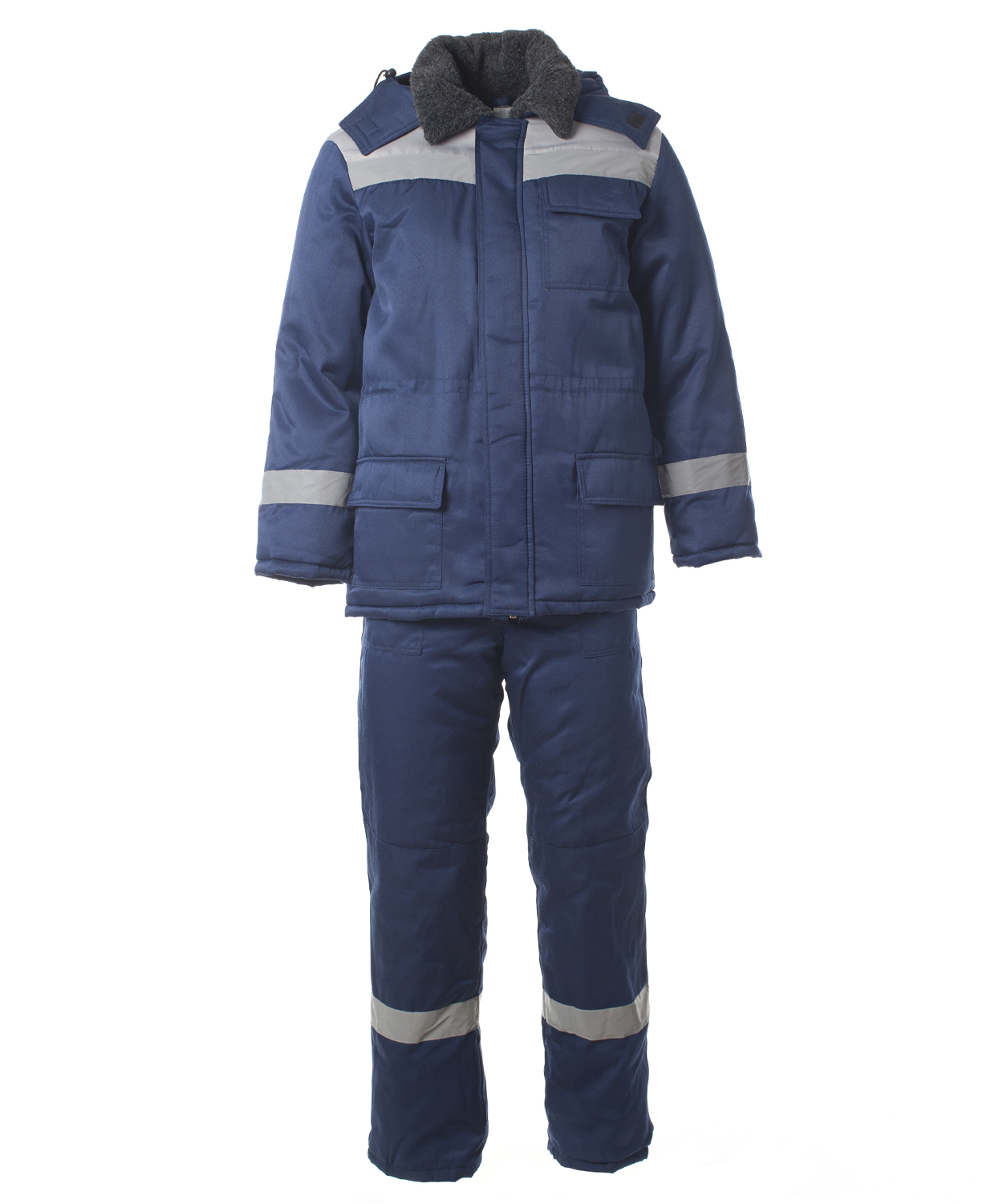 Костюм СТАНДАРТ-ЛЮКС зимний (тк. Грета) с СОП куртка п/к, цв. тм.синий с серым