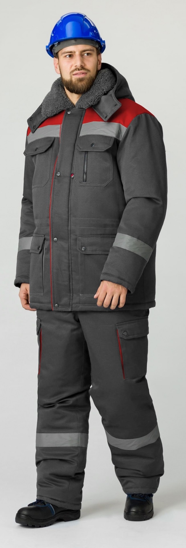 Костюм зимний Титан-Ультра UZ (тк.Смесовая,240) п/к, т.серый/красный
