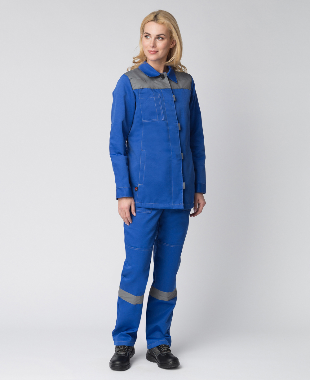 Костюм женский Весна-1 СОП NEW (тк.Смесовая,210) брюки, васильковый/серый
