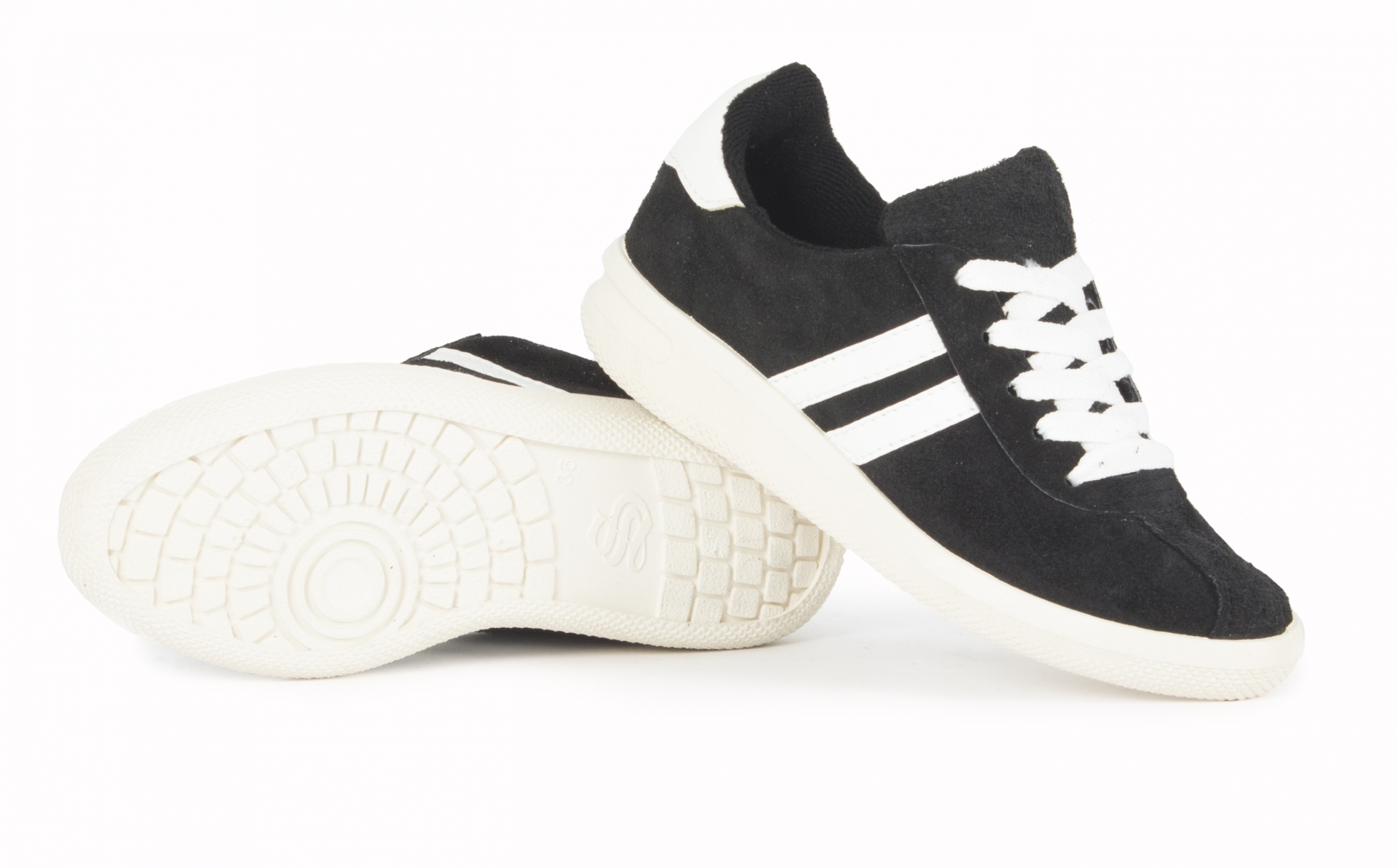 Кроссовки нат.замша ПВХ (черный/белый)