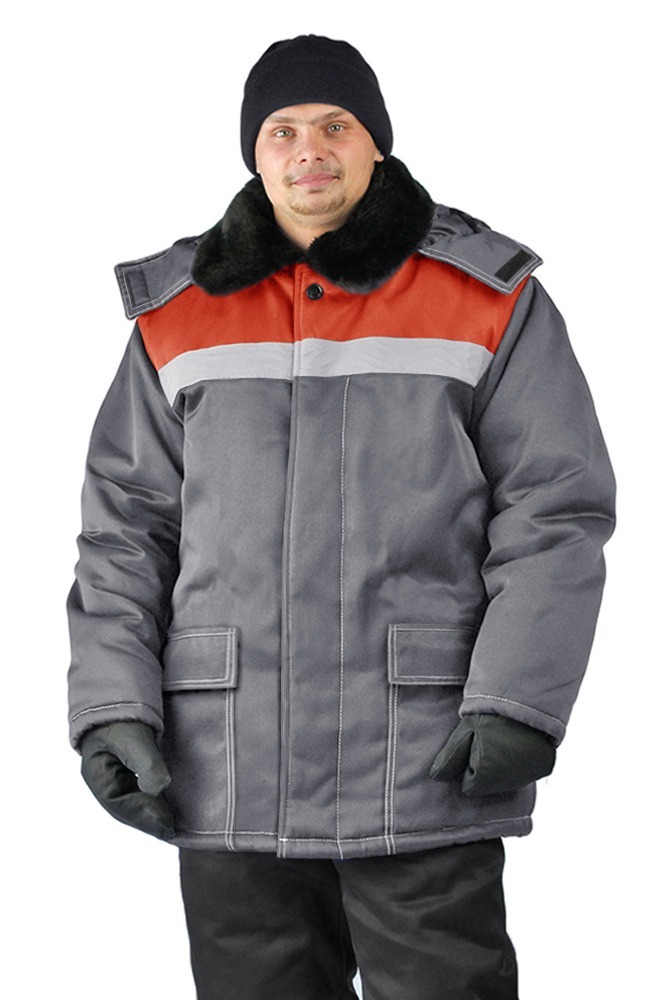 Куртка УРАЛ зимняя (т.серый/красный)