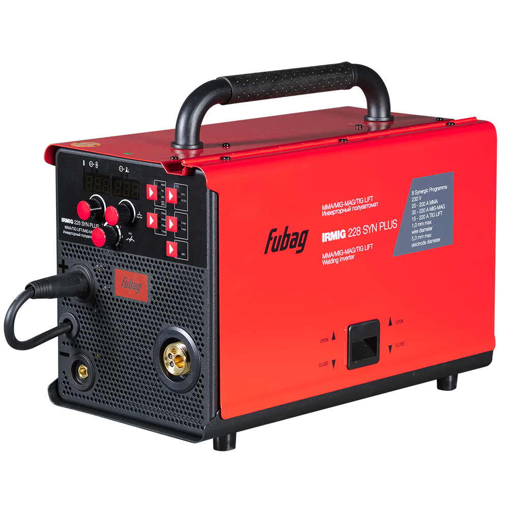 FUBAG Сварочный полуавтомат IRMIG 228 SYN PLUS (41381) + Маска сварщика "Хамелеон" IR 9-13N S (38072) + Сварочные краги на подкладке красные FWGN 10R (641180)