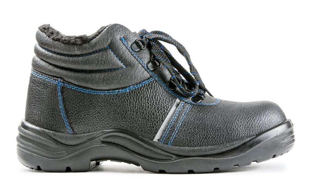 Кожаные ботинки c мягким кантом и глухим клапаном для защиты ног от общих производственных загрязнений в зимний период.