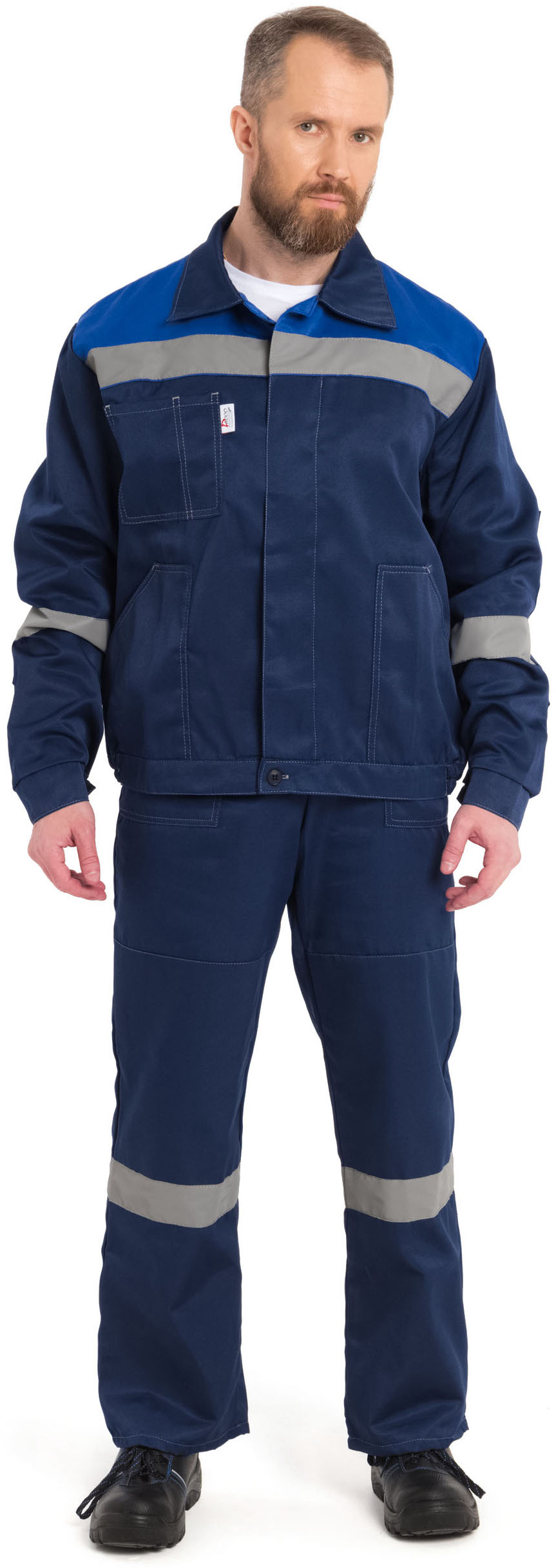 - Световозвращающая полоса по линии кокетки на полочках, на спине и по нижней части полукомбинезона шириной 50 мм;