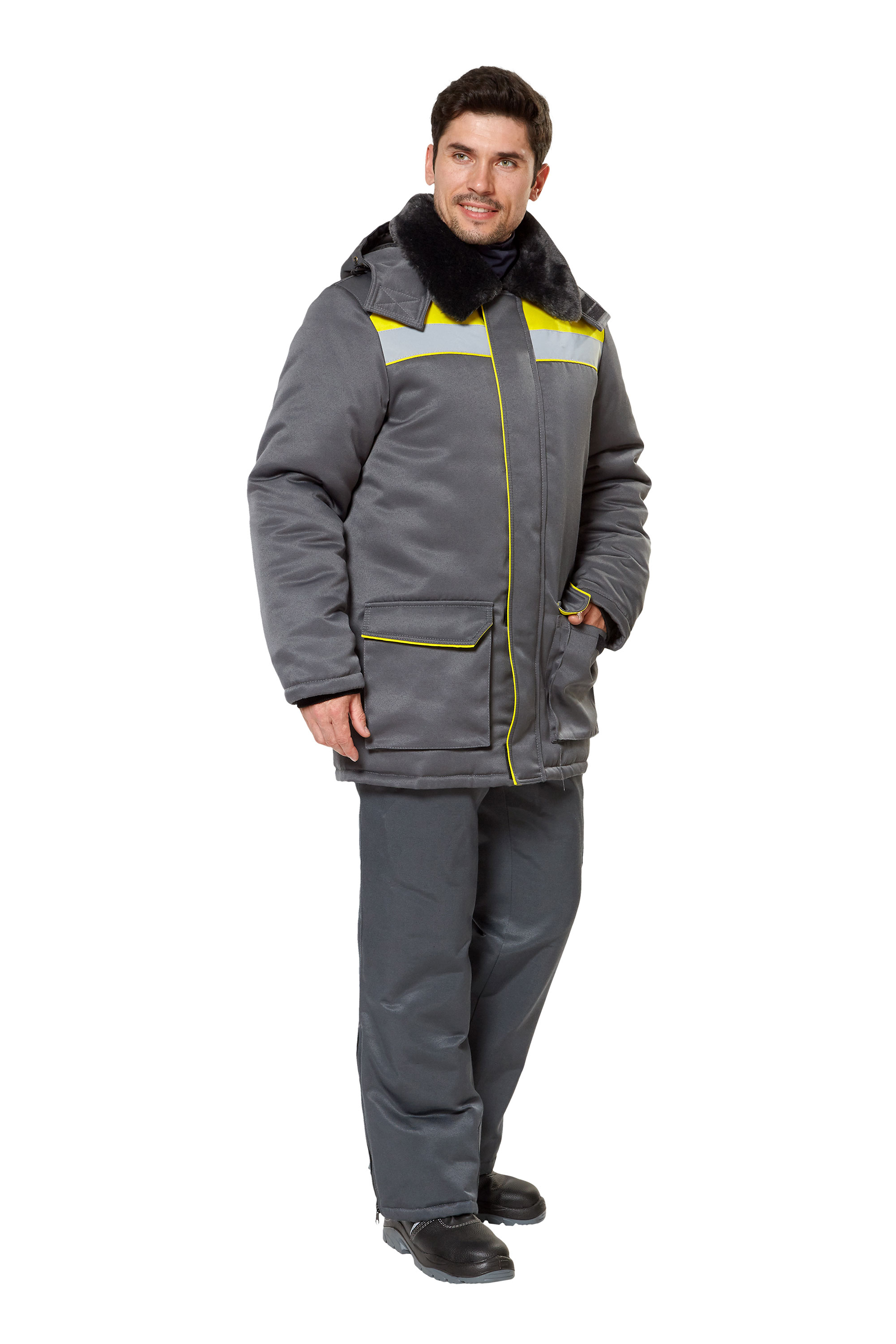 Куртка ПРИМ зимняя (серый/желтый)
